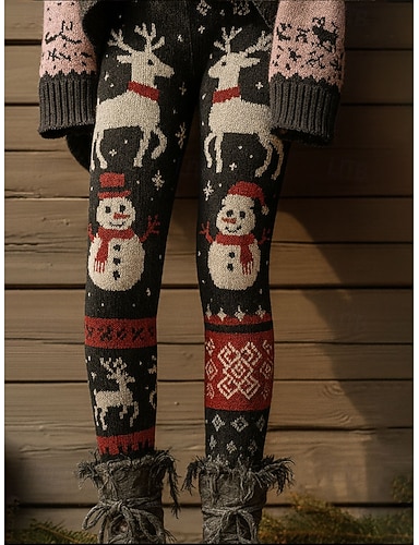 نسائي طماق العطلة عتيق النمط العرقي مكتمل الطول خصر عاليPantsعيد الميلاد المجيد الرسم كل رجل ثلج طباعة ثلاثية الأبعاد سريع جاف التنفس إمكانية ناعم قابل للبسط رسمي الأماكن المفتوحة عطلة أسود أبيض