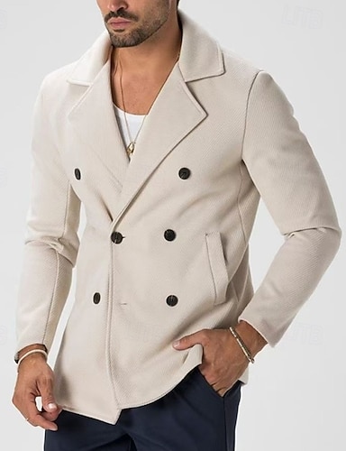 رجالي معطف الطاووس ترانش كوت عطلة مناسب للبس اليومي الخريف الشتاء بوليستر ضد الهواء يمكن ارتداؤها ملابس خارجية ملابس موضة كلاسيكي سهل جيب Lapel صدر مزدوج