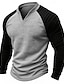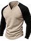 رجالي تي الأعلى قميص طويل الأكمام كم طويل V رقبة الخريف الشتاء لون الصلبة عتيق يوميا رجعي مكشكش مكعبات الألوان الأماكن المفتوحة شارع فضفاض أزرق بني كاكي تي شيرت للرجال