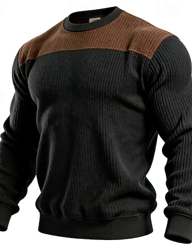 رجالي كنزة صوفية سترة متماسكة مضلع متماسكة قمصان عادية محبوك ألوان متناوبة رقبة عالية مدورة موضة أساسي عطلة مناسب للبس اليومي ملابس الخريف الشتاء أسود S M L