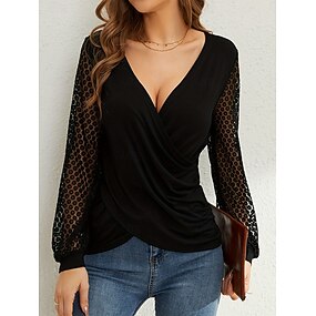 نسائي قميص بلوزة لون الصلبة أساسي كاجوال كم طويل V رقبة قمصان عادية مناسب للبس اليومي دانتيل بقع أسود الخريف الشتاء