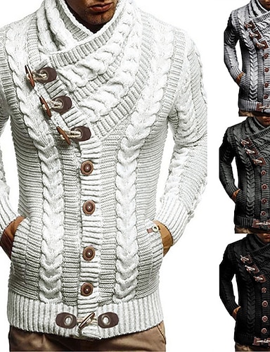 رجالي سترة من صوف محبوك كارديجان مكتنزة متماسكة سترة زرر سهل ياقة شال دافئ / تدفيئ الحديث المعاصر فضفاض مناسب للبس اليومي ملابس الخريف الشتاء أسود بني M L XL