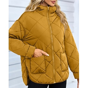 نسائي معطف شتوي سترة هوديي الأماكن المفتوحة شارع مناسب للبس اليومي الخريف الشتاء طويلة معطف عادي الدفء متنفس أنيق كاجوال جاكتس كم طويل مخطط ومنقوشة مع جيوب افتح السحاب كاكي