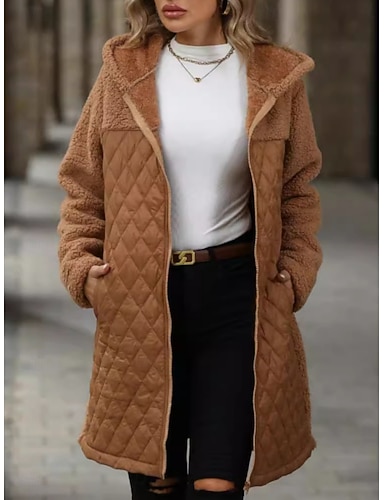 نسائي معطف شتوي سترة هوديي الدفء مريح سحاب جيب كاجوال سهل عطلة مناسب للبس اليومي مناسب للخارج عطلة نهاية الاسبوع عادية مع قبعة عادي كم طويل ملابس خارجية أرزق بحري أسود القرمزي الخريف الشتاء