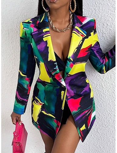 نسائي جاكيت مناسب للحفلات جيب هندسي ضد الهواء موضة عادي ملابس خارجية كم طويل الخريف غني بالألوان M