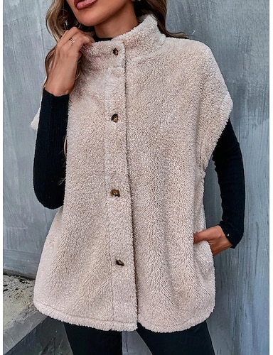 نسائي جاكيت شتوي شارع مناسب للبس اليومي عطلة الخريف الشتاء عادية معطف عادي الدفء متنفس كاجوال جاكتس بدون كم غير الطباعة لون الصلبة قابل للتعديل البيج