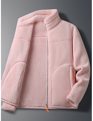 نسائي سترة شيربا مريح متنفس سحاب جيب كاجوال سهل عطلة شارع فضفاض مناسب للبس اليومي سحاب عادية مرتفعة عادي كم طويل ملابس خارجية أبيض وردي بلاشيهغ أرجواني الربيع الخريف