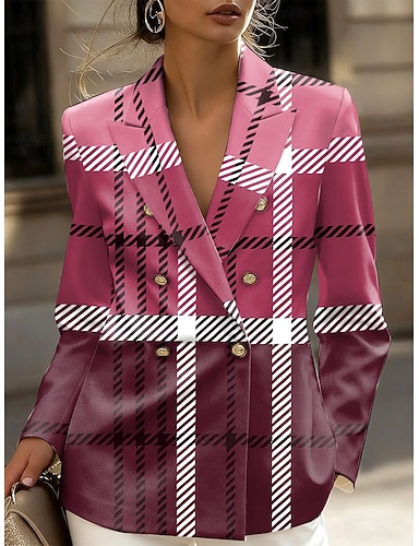 نسائي سترة مريح متنفس Buttons طباعة موضة كاجوال هندسي رسمي المكتب شارع فضفاض صدر مزدوج عادية شق الصدر علوي عادي كم طويل ملابس خارجية وردي بلاشيهغ أزرق أرجواني الربيع الخريف
