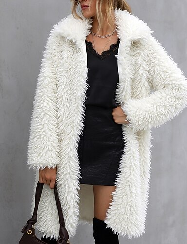 نسائي معطف معطف من الفرو الصناعي الدفء مريح الفراء والجلود موضة تاي داي عطلة مناسب للبس اليومي مناسب للخارج عطلة نهاية الاسبوع طويلة طوي عادي كم طويل ملابس خارجية أبيض الخريف الشتاء