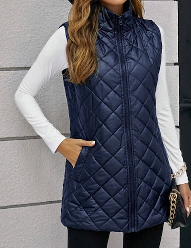 نسائي سترة الدفء مريح سحاب جيب كاجوال سهل مناسب للخارج عطلة نهاية الاسبوع سحاب طويلة طوي عادي بدون كم ملابس خارجية أرزق بحري أسود بني الخريف الشتاء