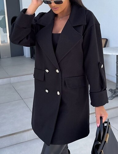 نسائي معطف الدفء مريح Buttons أنيق لون الصلبة مناسب للبس اليومي صدر مزدوج V رقبة عادي كم طويل ملابس خارجية أسود أبيض أخضر الشتاء