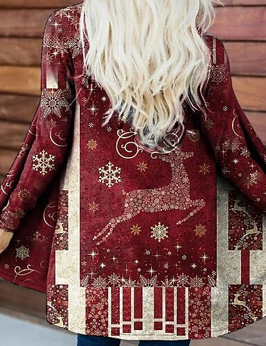 معطف شتوي نسائي لعيد الميلاد، عباءة/عباءات سريعة الجفاف، محبوكة خفيفة الوزن، نشطة، مبالغ فيها، غير رسمية، طويلة بدون ياقة، فضفاضة، بأكمام طويلة، ملابس خارجية، حمراء، خريف وشتاء