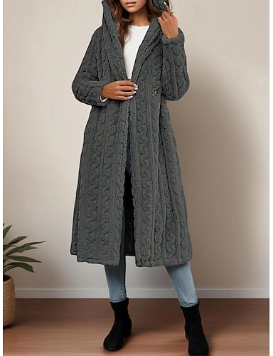 نسائي معطف شتوي سترة شيربا مريح متنفس الأمام مفتوح كاجوال سهل عطلة شارع فضفاض مناسب للبس اليومي الأمام مفتوح طويلة مع قبعة عادي كم طويل ملابس خارجية أسود مشمشي البيج الربيع الخريف