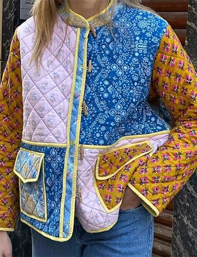 نسائي جاكيت شتوي سترة البخاخ الدفء مريح جيب Buttons طباعة موضة يوميا الخارج هندسي عطلة فضفاض مناسب للبس اليومي صدر فردي عادية مرتفعة عادي كم طويل ملابس خارجية أحمر أزرق أرجواني الخريف الشتاء