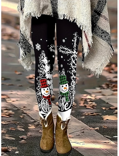 نسائي طماق العطلة عتيق موضة مكتمل الطول خصر عاليPantsعيد الميلاد المجيد الرسم رجل ثلج طبع الدفء ناعم متنفس قابل للبسط رسمي الأماكن المفتوحة عطلة أسود الصيف الربيع الخريف قياس نحيل