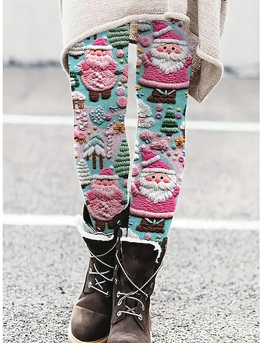 نسائي طماق العطلة عتيق موضة مكتمل الطول خصر عاليPantsعيد الميلاد المجيد الرسم بابا نويل طبع الدفء ناعم متنفس قابل للبسط رسمي الأماكن المفتوحة عطلة زهري الصيف الربيع الخريف قياس نحيل