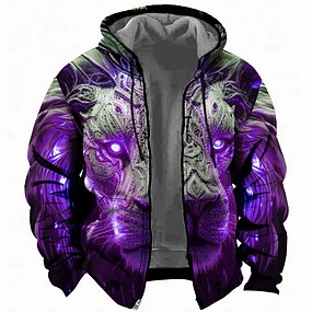 رجالي طباعة جلد نمر قبعة كنزات بقبعة كنزة موضة كوول كم طويل مع قبعة مناسب للعطلات السفر ملابس الشارع أصفر أحمر رباط سحاب جيب الخريف الشتاء مصمم