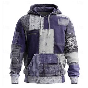 رجالي هوديي البلوز هوديي البلوز محبوك مضلع أخضر داكن أزرق أرجواني رمادي فاتح مع قبعة سهل بقع مكعبات الألوان الرياضة & في الخارج فضفاض مناسب للبس اليومي أناقة الشارع كوول ملابس رياضية