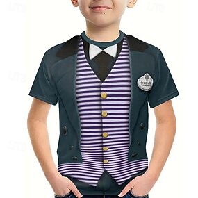 للصبيان 3D كارتون تي شيرت كنزة مطبوعة كم قصير الصيف الربيع موضة أساسي أطفال 4-12 سنة رقبة العمل الأماكن المفتوحة فضفاض مناسب للبس اليومي عادي