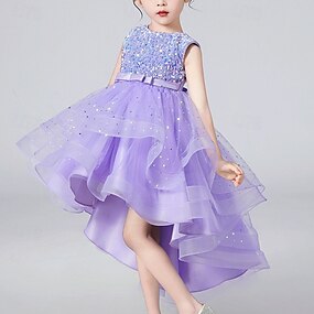 أطفال للفتيات فستان أرنب بدون كم الأماكن المفتوحة فضفاض موضة بديع بوليستر طول الركبة لباس غير رسمي فستان شكل حرف A الصيف 4 سنوات + أرجواني