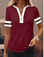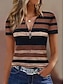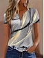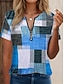 نسائي تي شيرت سحاب ربع الرمز البريدي الرسم هندسي ألوان متناوبة استوائي ستايل هاواي أنيق كم قصير رقبة عالية مدورة V رقبة قمصان عادية مناسب للبس اليومي الرياضة مناسب للخارج
