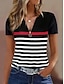 عيد الاستقلال الأمريكي قميص نسائي بسحاب ربع مقلوب جرافيك شكل هندسي كتلة لونية استوائية هاواي أنيق بأكمام قصيرة رقبة دائرية رقبة V عادية يومية رياضية للخروج أبيض صيفي