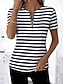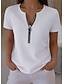 نسائي تي شيرت سحاب ربع الرمز البريدي الرسم هندسي ألوان متناوبة استوائي ستايل هاواي أنيق كم قصير رقبة عالية مدورة V رقبة قمصان عادية مناسب للبس اليومي الرياضة مناسب للخارج أسود أبيض الصيف الربيع