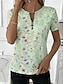 نسائي تي شيرت ربع الرمز البريدي الرسم هندسي مجرد استوائي ستايل هاواي أنيق كم قصير رقبة عالية مدورة قمصان عادية مناسب للبس اليومي الرياضة مناسب للخارج أخضر فاتح الصيف الربيع