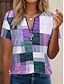 نسائي تي شيرت مكعبات الألوان ربع الرمز البريدي الرسم هندسي مجرد استوائي ستايل هاواي أنيق كم قصير رقبة عالية مدورة قمصان عادية زفاف الشاطئ مناسب للبس اليومي الرياضة أزرق أحمر أرجواني كاكي رمادي
