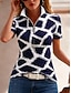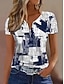 نسائي تي شيرت سحاب ربع الرمز البريدي الرسم هندسي مجرد استوائي ستايل هاواي أنيق كم قصير رقبة عالية مدورة قمصان عادية مناسب للبس اليومي الرياضة مناسب للخارج أزرق الصيف الربيع