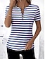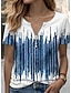 نسائي تي شيرت ربع الرمز البريدي الرسم هندسي مخطط استوائي ستايل هاواي أنيق كم قصير رقبة عالية مدورة قمصان عادية زفاف الشاطئ مناسب للبس اليومي الرياضة أزرق البحرية الصيف الربيع