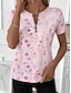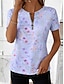 نسائي تي شيرت ربع الرمز البريدي الرسم منقوش استوائي ستايل هاواي أنيق كم قصير رقبة عالية مدورة قمصان عادية مناسب للبس اليومي الرياضة مناسب للخارج أزرق أحمر أرجواني أخضر الصيف الربيع
