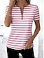 نسائي تي شيرت سحاب ربع الرمز البريدي الرسم هندسي مجرد استوائي ستايل هاواي أنيق كم قصير رقبة عالية مدورة V رقبة قمصان عادية مناسب للبس اليومي الرياضة مناسب للخارج وردي بلاشيهغ الصيف الربيع