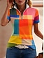نسائي تي شيرت سحاب مكعبات الألوان ربع الرمز البريدي الرسم هندسي استوائي ستايل هاواي أنيق كم قصير رقبة عالية مدورة قمصان عادية مناسب للبس اليومي الرياضة مناسب للخارج فوشيا الصيف الربيع