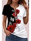 نسائي تي شيرت ربع الرمز البريدي ورد الرسم النباتات استوائي ستايل هاواي أنيق كم قصير رقبة عالية مدورة قمصان عادية مناسب للبس اليومي الرياضة مناسب للخارج أسود وردي الصيف الربيع
