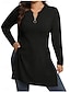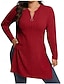نسائي تي شيرت بورجوندي بلوزة مقصوص سترة متدفقة ربع الرمز البريدي سهل أساسي كم طويل V رقبة دون الكتف نصف سحاب قمصان عادية فضفاض عطلة نهاية الاسبوع أسود خريف & شتاء