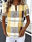 نسائي تي شيرت ربع الرمز البريدي الرسم منقوش أنيق كلاسيكي كاجوال كم قصير رقبة عالية مدورة قمصان عادية مناسب للبس اليومي الرياضة مناسب للخارج أصفر الصيف الربيع