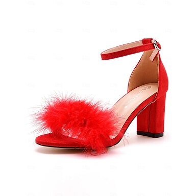 صندل زفاف بكعب سميك مزين بالريش للنساء – حذاء أنيق لحفلات الزفاف مع حزام للكاحل