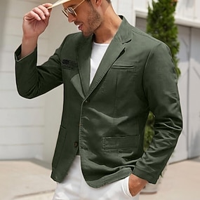 رجالي سترة جيليه عطلة مناسب للبس اليومي مواعدة موضة كاجوال ربيع & الصيف Buttons جيب 75٪ قطن مريح سهل زر واحد صدر واحد Lapel عادي عنابي أزرق البحرية أخضر داكن كاكي سترة