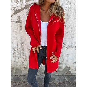 نسائي سترة هوديي مريح سحاب جيب كاجوال سهل الأماكن المفتوحة عطلة مناسب للعطلات مناسب للخارج عادية مع قبعة عادي كم طويل ملابس خارجية أرزق بحري أسود أحمر الربيع الخريف