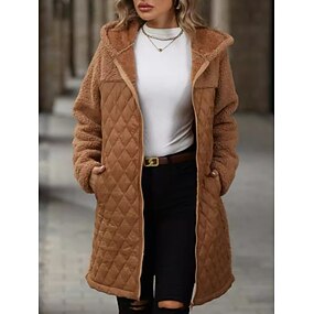 نسائي معطف شتوي سترة هوديي الأماكن المفتوحة شارع مناسب للبس اليومي الخريف الشتاء طويلة معطف عادي الدفء متنفس أنيق كاجوال جاكتس كم طويل مخطط ومنقوشة مع جيوب افتح السحاب كاكي