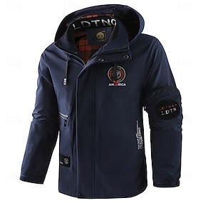 رجالي ملابس مطبوعة بأحرف جاكيت ضد الرياح سترة مقنعين حديقة مقاوم للماء ضد الهواء متعددة جيب كاجوال الأماكن المفتوحة التخييم والتنزه غطاء قابل للفصل افتح السحاب معطف خارجي أنيق الخريف الشتاء مرتفعة