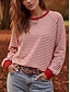 نسائي Pullover بلوزات مخطط موضة أناقة الشارع كلاسيكي كم طويل رقبة عالية مدورة رقبة دائرية قمصان عادية مناسب للبس اليومي فضفاض طباعة أحمر الربيع الخريف