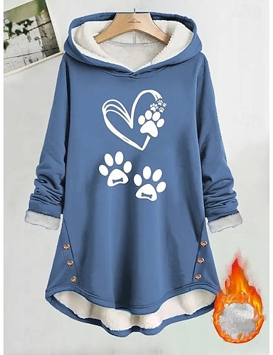 نسائي كنزة صوفية قلب الرسم دافئ كاجوال أجعد كم طويل مع قبعة قمصان عادية فضفاض الرياضة طباعة أسود وردي بلاشيهغ أزرق رمادي الخريف الشتاء