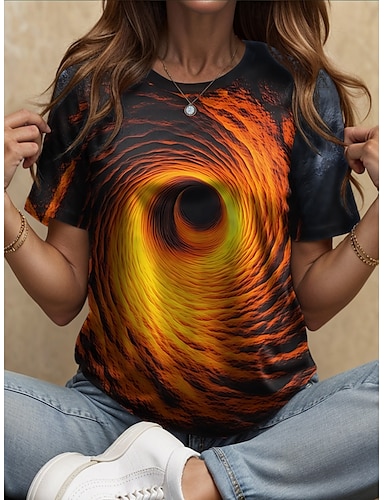 نسائي تي شيرت الرسم مجرد عتيق أنيق كلاسيكي كم قصير رقبة عالية مدورة رقبة دائرية قمصان عادية مناسب للبس اليومي طباعة أزرق برتقالي الصيف الربيع