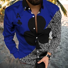 رجالي نموذج هندسي لعبة البوكر قميص قميص البولينج زر حتى القميص كم طويل موضة مصمم كاجوال الأماكن المفتوحة فضفاض مناسب للبس اليومي خريف & شتاء طوي طباعة زر أسفل