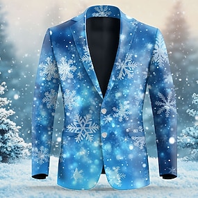 بليزر رجالي مطبوع عليه مشهد عيد الميلاد، معطف كاجوال ندفة الثلج، سترة بليزر، سترة مريحة قابلة للتنفس، حفلات مسائية يومية، أزرار، طباعة ثلاثية الأبعاد، جيوب متعددة، مقاس عادي للخريف&إجازة الشتاء