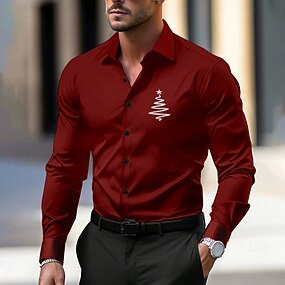قميص رجالي كاجوال بطبعة شجرة عيد الميلاد للارتداء اليومي للخروج في الخريف&قميص شتوي بأكمام طويلة باللون الأزرق الداكن مقاسات S، M، L مصنوع من قماش مطاطي في 4 اتجاهات