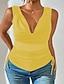 نسائي قميص أنيقة بلوزة من الساتان بلوزة مكشكش سهل أنيق مثيرة بدون كم V رقبة قمصان عادية مناسب للبس اليومي مناسب للعطلات مناسب للخارج أسود أبيض أصفر أزرق البحرية برتقالي الصيف الربيع الخريف