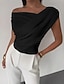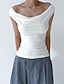 نسائي تي شيرت مكشكش سهل أنيق موضة مثيرة بدون كم دون الكتف قمصان عادية مناسب للبس اليومي مناسب للخارج عطلة نهاية الاسبوع أسود أبيض الصيف الربيع